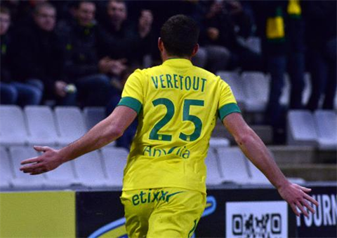 | Le milieu nantais Jordan Veretout célèbre son but contre Bordeaux, le 13 décembre au stade de la Beaujoire. Photo : AFP/VNA/CVN |