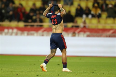 | L'attaquant de Lyon Memphis Depay après avoir manqué un penalty contre Monaco, le 24 février à Louis-II. |