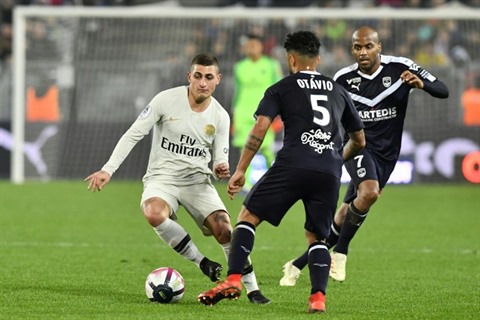 | Le milieu italien du PSG Marco Verratti (gauche) face au milieu brésilien des Girondins Otavio, le 2 décembre à Bordeaux. |