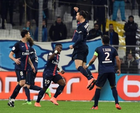 | Zlatan Ibrahimovic et ses coéquipiers fêtent son but face à l'OM au Vélodrome, le 7 février. |