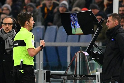 | Un arbitrage vidéo à Rome, lors du derby Roma-Lazio, le 18 novembre au Stadio Olimpico. |