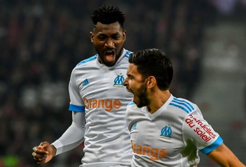 | Le milieu de l'OM Morgan Sanson (droite) exulte après avoir inscrit l'unique but du match face à Lille au stade Pierre-Mauroy, le 29 octobre. |