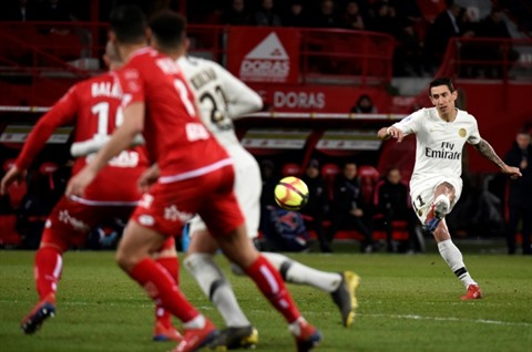 | Le milieu de terrain du PSG Angel Di Maria (droite) buteur lors de la victoire 4-0 à Dijon en L1 le 12 mars. |