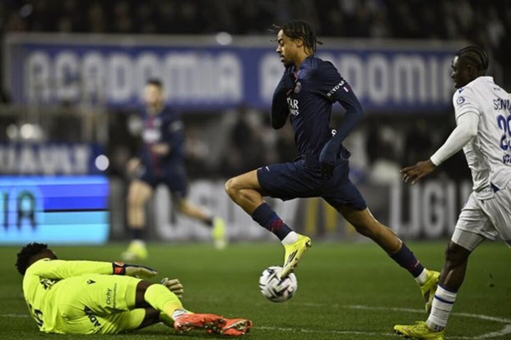| Les Parisiens s'imposent à Auxerre grâce à un but de Bradley Barcola, sur un service d'Ousmane Dembélé, le 23 janvier 2026. |