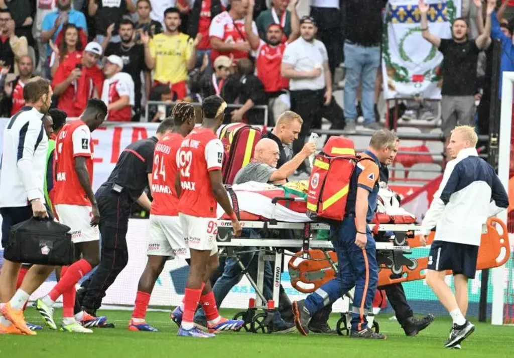 Très vite entouré par les joueurs des deux équipes, Gomes a été soigné sur le terrain durant plus de 25 minutes avant d'être évacué par les pompiers sous les acclamations du stade Auguste-Delaune.