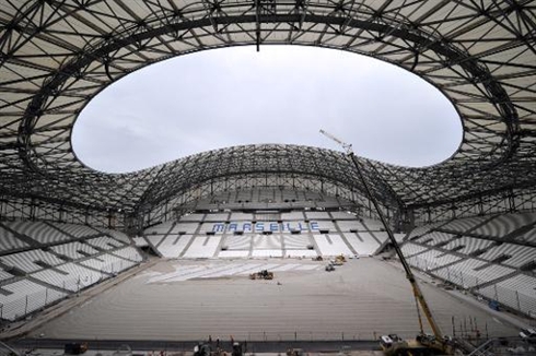 | Le Stade Vélodrome en pleine rénovation le 4 juillet à Marseille. |