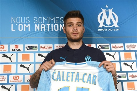 | Le défenseur croate Duje Caleta-Car, recrue de l'OM, lors de sa présentation le 20 juillet à Marseille. |