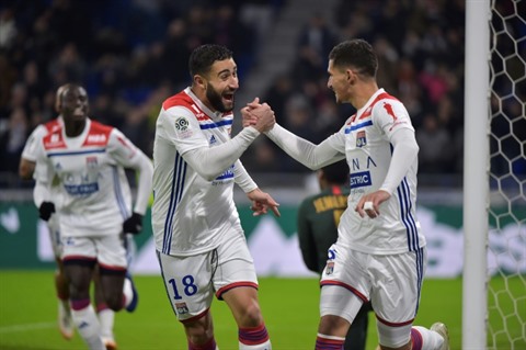 | Les Lyonnais Nabil Fekir et Houssem Aouar ont tous les deux marqué dans le large succès de l'OL sur Monaco au Parc OL, le 16 décembre. |