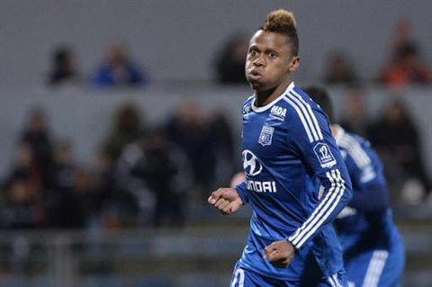 | L'attaquant de Lyon Clinton Njie, auteur de l'égalisation face à Lorient, le 15 février au Moustoir. |