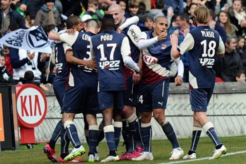 | La joie des Bordelais après le but de Diego Rolan face à Saint-Étienne, le 15 février au stade Chaban-Delmas. |