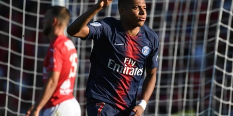 | L'attaquant du PSG Kylian Mbappé buteur à Nîmes en 4e journée de L1 le 1er septembre 2018. |