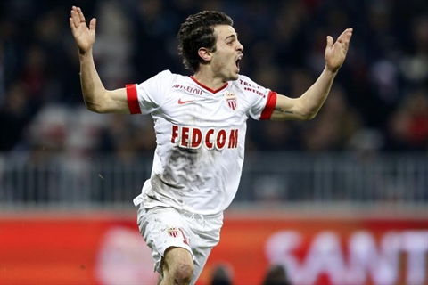 | Le milieu de terrain de Monaco, Silva Bernardo, célèbre son but contre Nice en Ligue 1 de football, le 20 février à Nice |