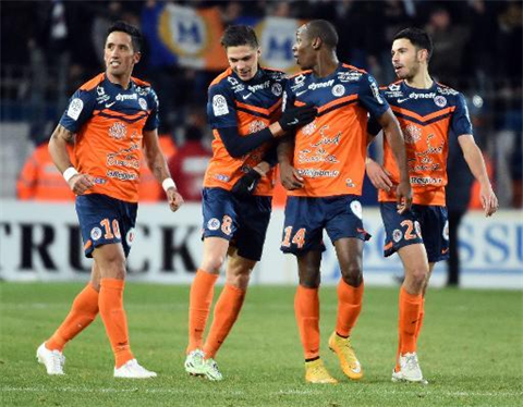 | Les joueurs de Montpellier se congratulent après un but de Lucas Barrios contre Nantes, le 24 janvier à La Mosson. |