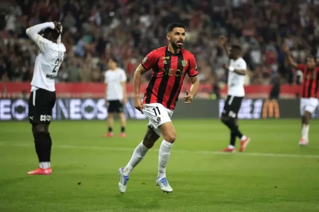 | Morgan Sanson auteur de l'unique but de la victoire de Nice contre Reims à l'Allianz Riviera, le 2 mai. |