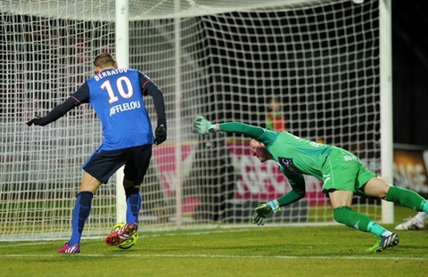 | L'attaquant de Monaco Dimitar Berbatov face à Evian TG, le 7 mars à Annecy. |