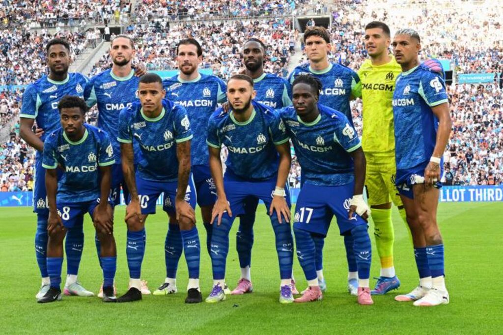 | L'équipe de l'OM avant un match amical contre Aston Villa, le 9 aoüt 2025 au Vélodrome. |