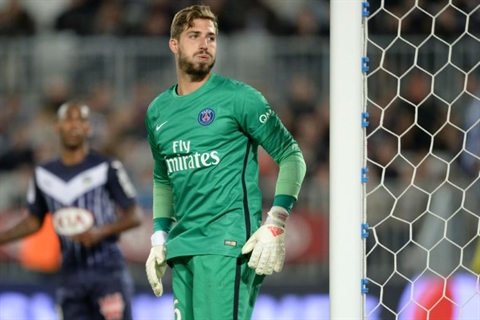 | Le gardien allemand du Paris SG, Kevin Trapp, le 11 mai lors du match de L1 face à Bordeaux, au stade Matmut Atlantique. |