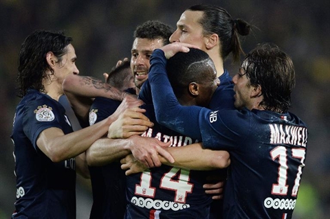 Le joie des joueurs du PSG après le but de Blaise Matuidi, le 3 mai à Nantes. Photo : AFP/VNA/CVN |