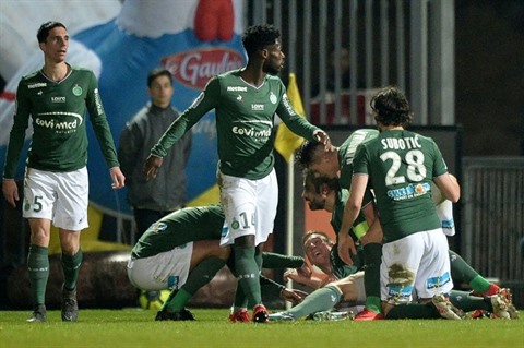 | L'AS Saint-Étienne est allée s'imposer sur la pelouse d'Angers grâce à un but de Robert Beric (sol), le 17 février. |