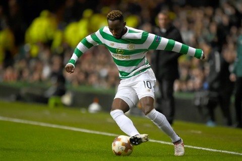 | L'attaquant français du Celtic, Moussa Dembélé, lors du match face au Zenit Saint Petersbourg en Europa League à Glasgow, le 15 février. |