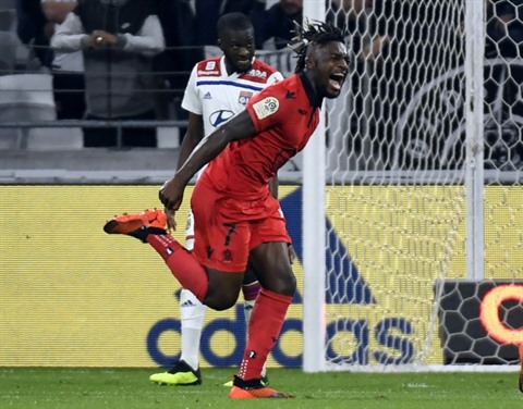 | Le milieu de terrain de Nice, Allan Saint-Maximin, buteur lors de la victoire 1-0 à Lyon en 4e journée de L1, le 31 août. |