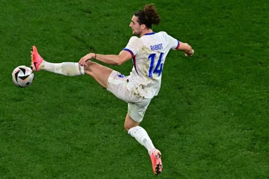 | Adrien Rabiot lors de la demi-finale de l'Euro perdue contre l'Espagne le 9 juillet 2024 à Munich. Le milieu de terrain français, libre de tout contrat depuis son départ de la Juventus Turin, est en "négociations avancées" avec l'OM. |