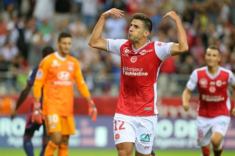 | L'attaquant de Reims, Pablo Chavarria, buteur lors de la victoire 1-0 face à Lyon au Stade Auguste Delaune le 17 août. |