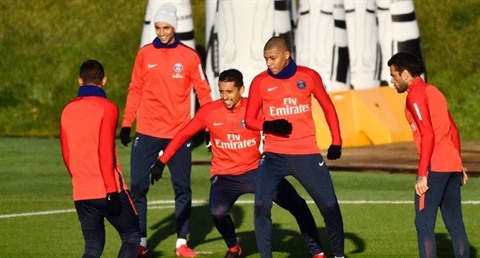 | Le Paris SG à l'entraînement, à Saint-Germain-en-Laye, 19 janvier. |