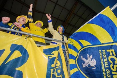 | Supporteurs du FC Sochaux en liesse lors du match de Ligue 2 contre Créteil, le 10 avril au stade Auguste Bona. |