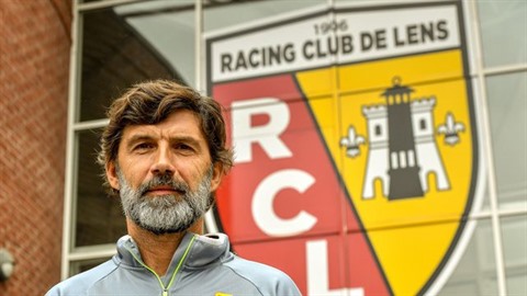 | L'entraîneur de Lens, Eric Sikora, pose après une conférence de presse au centre d'entraînement du club, le 21 août. |