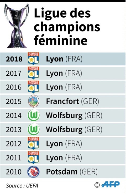 | Les derniers vainqueurs de la Ligue des champions dames. |