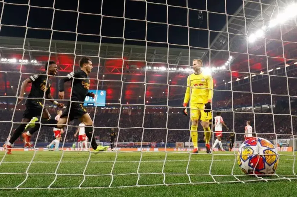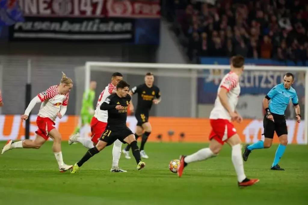 Les locaux ont cru ouvrir le score dès la deuxième minute de jeu, avant que le but de Benjamin Sesko soit refusé pour un hors-jeu de position d'Henrichs devant le gardien madrilène Andriy Lunin.