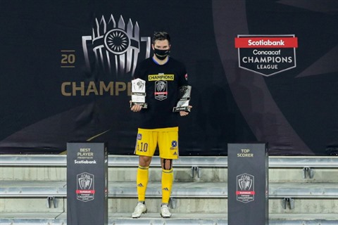 | André-Pierre Gignac reçoit les prix de meilleur joueur et meilleur buteur après la finale de la Ligue des champions Concacaf, le 23 décembre 2020 à Orlando. |