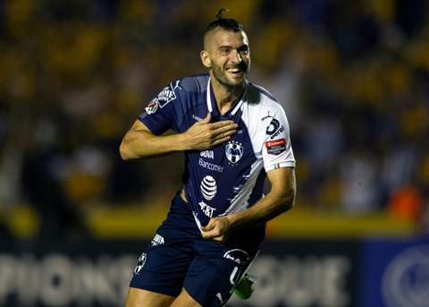 | Nicolás Sánchez, le défenseur des Rayados, célèbre son but contre les Tigres de Monterrey, en finale aller de la Ligue des champions de la Concacaf, le 23 avril à Monterrey. |