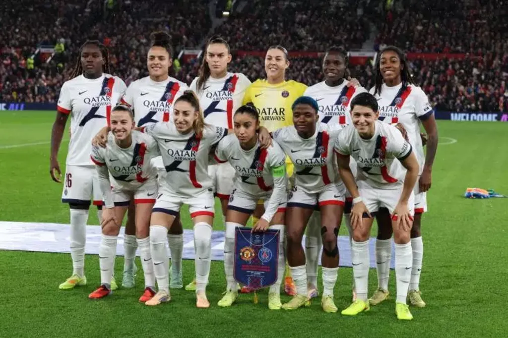 | Les joueuses du PSG avant un match contre Manchester United, le 2 novembre à Old Trafford. |