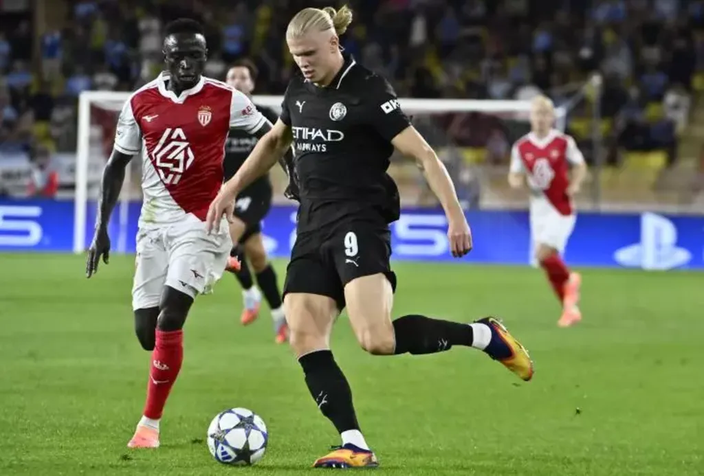 | Erling Haaland, l'attaquant norvégien de Manchester City, au cours du match de Ligue des champions contre Monaco le 1er octobre au Stade Louis II à Monaco. |