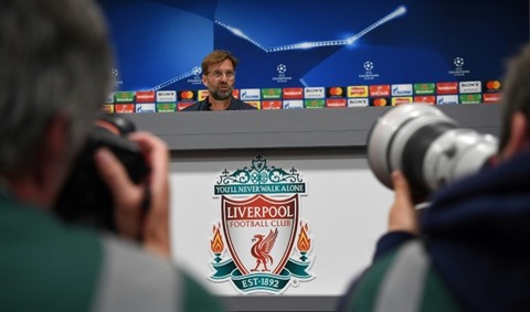 | L'entraîneur allemand de Liverpool Jürgen Klopp tient une conférence de presse à Anfield, le 21 mai, à cinq jours de la finale de Ligue des champions. |