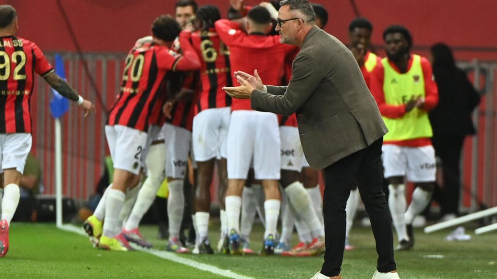 | Les Niçois de Franck Haise, ici lors de la réception de Brest le 17 mai, vont affronter les Portugais de Benfica sur leur route vers la C1. |