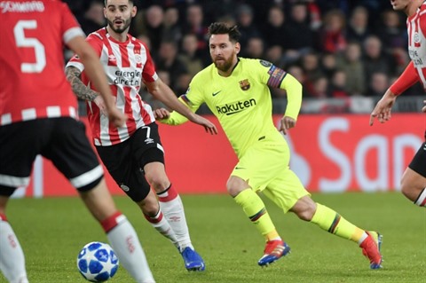 | La star du FC Barcelone, Lionel Messi, sur le terrain du PSV Eindhoven en Ligue des champions, le 28 novembre. |