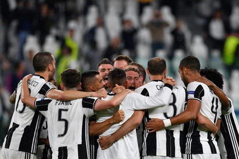 | Les joueurs de la Juventus se congratulent après leur qualification en finale de la Ligue des champions, en battant Monaco, le 9 mai au Juventus Stadium |