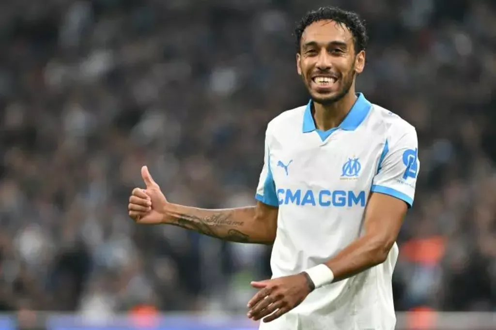 | Pierre-Emerick Aubameyang lors du match de C1 contre l'Atalanta Bergame à Marseille, le 5 novembre en France. |