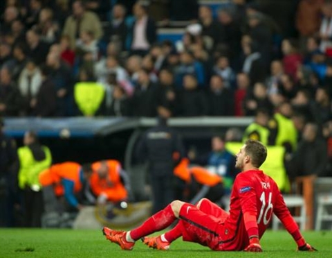 | Le gardien du PSG, Kevin Trapp, dépité lors du match contre le Real, le 3 novembre à Bernabeu. |