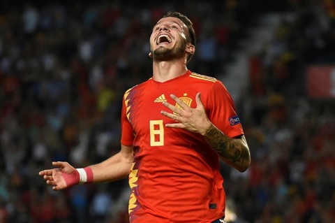 | Le milieu de terrain de l'Espagne, Saul Niguez, lors de la victoire face à la Croatie 6-0 en 2e journée de Ligue des Nations le 11 septembre. |