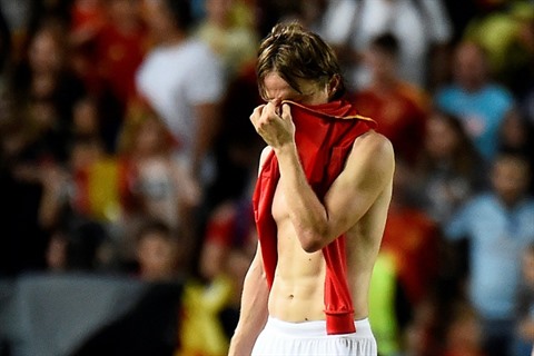 | Le milieu de terrain de la Croatie, Luka Modric, lors de la défaite face à l'Espagne 6-0 en 2e journée de Ligue des nations le 11 septembre. |
