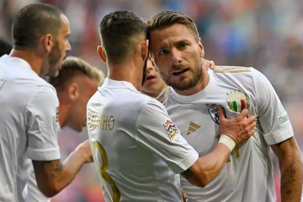 | Ciro Immobile (droite) vient d'égaliser sur penalty pour l'Italie contre l'Espagne, le 15 juin à Enschede. |