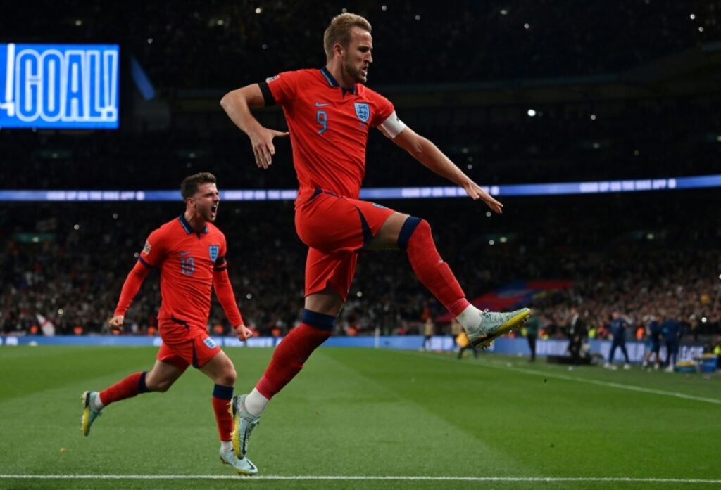 | Le capitaine de l'Angleterre, Harry Kane, vient de marquer le 3e but contre l'Allemagne à Wembley, le 26 septembre. |