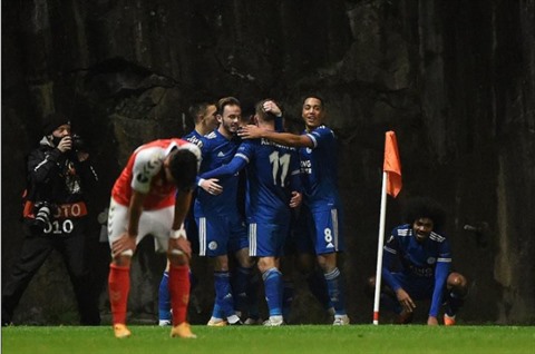 | La joie des joueurs de Leicester City après le but de la qualification signé Jamy Vardy sur la pelouse de Braga en Ligue Europa, le 26 novembre. |