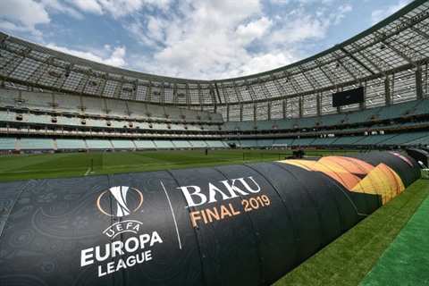 | Le stade olympique de Bakou, le 28 mai à l'heure d'accueillir la finale de la Ligue Europa entre les clubs anglais d'Arsenal et Chelsea. |