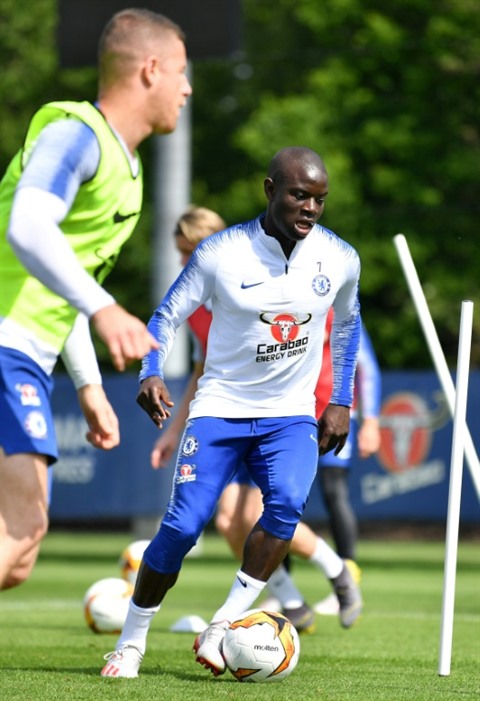 | Le milieu de Chelsea N'Golo Kanté prépare la finale de la Ligue Europa au centre d'entraînement du club à Cobham, le 22 mai. |
