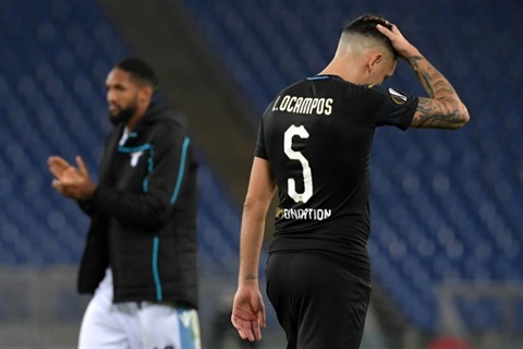 | La déception de Lucas Ocampos et les Marseillais, battus sur le terrain de la Lazio Rome, en Ligue Europa, le 8 novembre. |